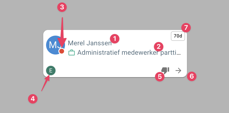 - De kandidaatstatus wordt weergegeven met een bolletje. Beweeg met de muis over het bolletje om de bijbehorende statustekst te zien.